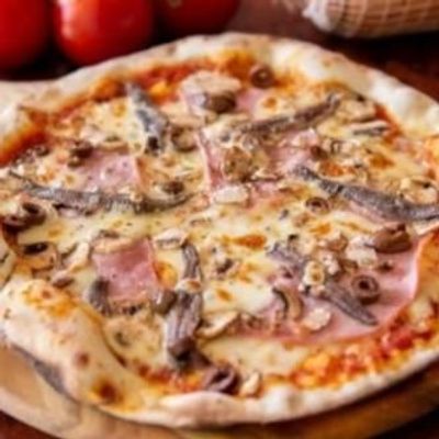 Double smoked ham, anchovy fillet, Kalamata olives, fresh mushroom, and mozzarella
