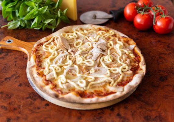 Chicken breast fillet, fresh onions, mozzarella, and Brazilian catupiry cheese