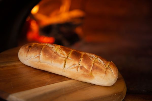 Woodfire roll of eight slices filled with garlic butter and parsley leaves
