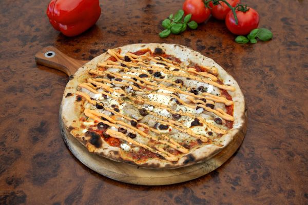 Chicken breast fillet, Kalamata olives, Danish feta, Brazilian catupiry cheese, mozzarella, and peri-peri sauce